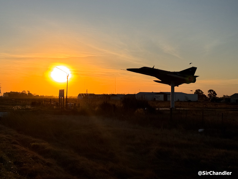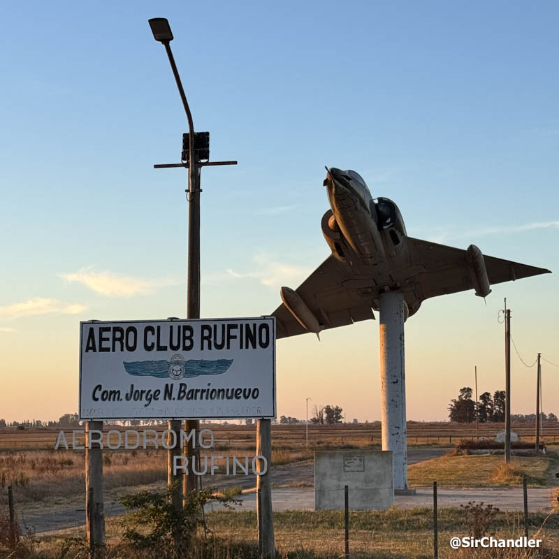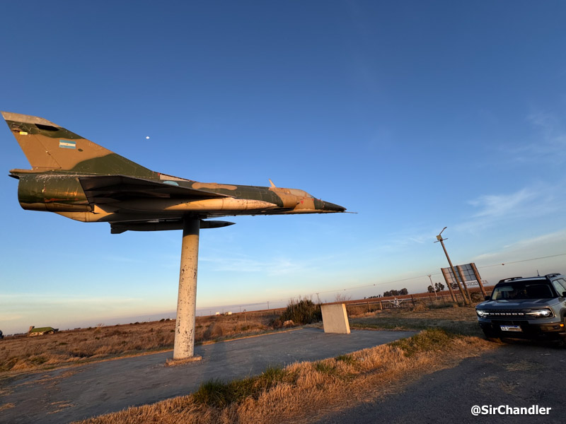Ayer frené rápidamente yendo para la banquina cuando vi este Mirage Dagger en la entrada de un aeroclub. Esto es en Rufino, Santa Fe. Y mi vecino José María, que vio la foto en Instagram me dijo que Jorge Barrionuevo, que ahí está como nombre del aeroclub, es un héroe de Malvinas nacido en esa ciudad. Busqué relatos de la guerra y encontré que volaba los A4 que hundieron a la fragata británica Coventry. Mi vecino fue compañero de colegio de Jorge ahí en Rufino 🙂