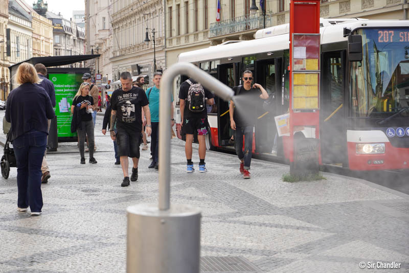 Junio es primavera de ese lado del planeta y eso hizo muy agradable el recorrido con buena temperatura. Pero ahora vi que tienen rociadores de agua para momentos de calor o simplemente refrescarse, en algunas paradas del trasporte público