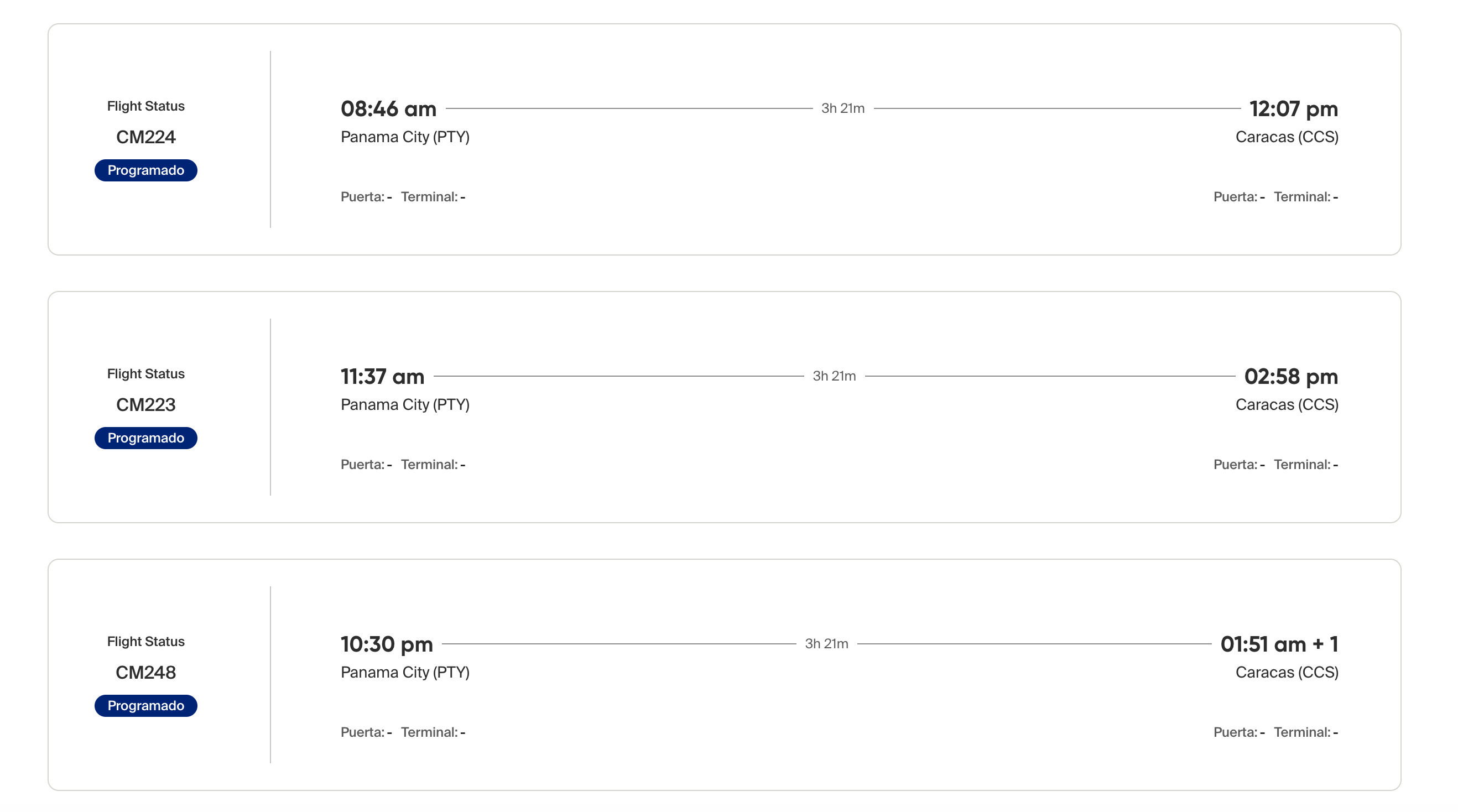 Aun en el sitio de COPA se pueden ver activos los vuelos de mañana con Caracas.