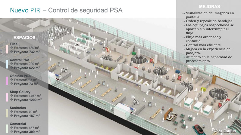 El gran cambio que se viene para fines de octubre es el cambio total de la ubicación del control de seguridad de la PSA, pasando a tener un lugar mucho más amplio y con más escaners. Puedo mostrar esta imagen, pero creo que no se dimensiona. Obviamente cuando abran estaré mostrando el nuevo sector. Pero en el video que pongo abajo está la recorrida por ese espacio «nuevo»