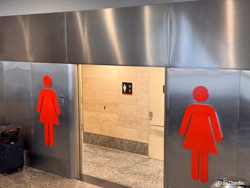 Algo que me llamó la atención es este cambio que reporté en un post dedicado. El baño que está entre ARRIBOS NACIONALES y el patio de comidas ahora es 100% femenino