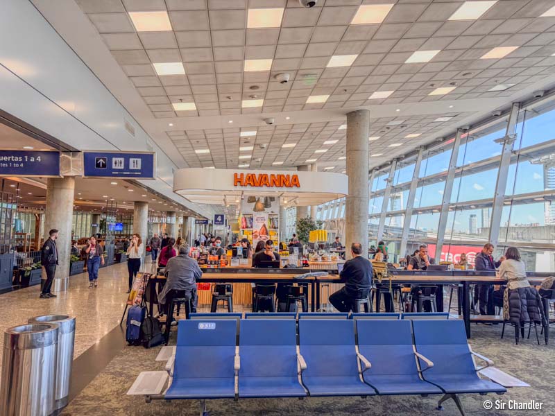 Ahora Havanna tiene dos islas como estas. Una es provisoria porque los corrieron del lugar donde están haciendo la zona de seguridad. No es que hay menos asientos porque pusieron barras con enchufes y bancos y la son más asientos. En el video destaco la gran cantidad de gente que lo usa y por eso la importancia de los enchufes en los aeropuertos