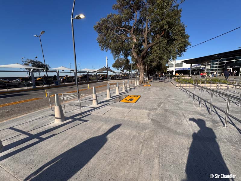 Pasamos al sector externo de la zona internacional de arribos. Ahí en estos días se habilita el buffer de taxis para el sector A, que es ese de arribos regionales. Así esperan ahí