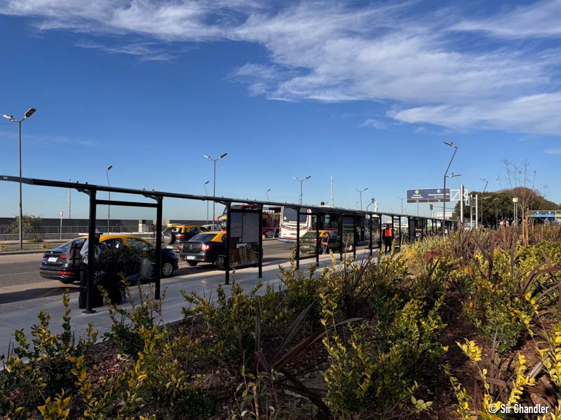 falta un buffer o algo para taxis en el sector C , como se ve en tu foto la fila sale a la calle y tapan las paradas de colectivo. Esto obliga a que los colectivos paren en medio de la avenida y haya que esquivar taxis para subir o bajar. Aparte de que termina quedando solo un carril para circular. A veces hay agentes de transito cortando la fila de taxis , pero muy poco tiempo. Ahi va a terminar viendo un accidente……