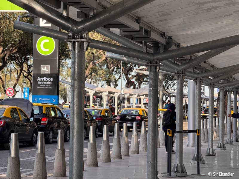 Esta es la entrada de taxis en la C, arribos nacionales. Pasan por una cámara que lee la patente y si no está habilitado por el GCBA no pasa… a un costado había un par de taxis que no reunían las condiciones… pero hay MUCHOS TAXIS. Quizás era el horario, pero hace unos años, al terminar la pandemia, había pocos taxis en general en la ciudad. Justo en estos días aumentaron bastante la tarifa… quizás por eso salieron todos 😛