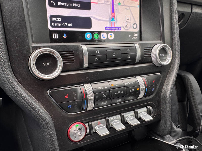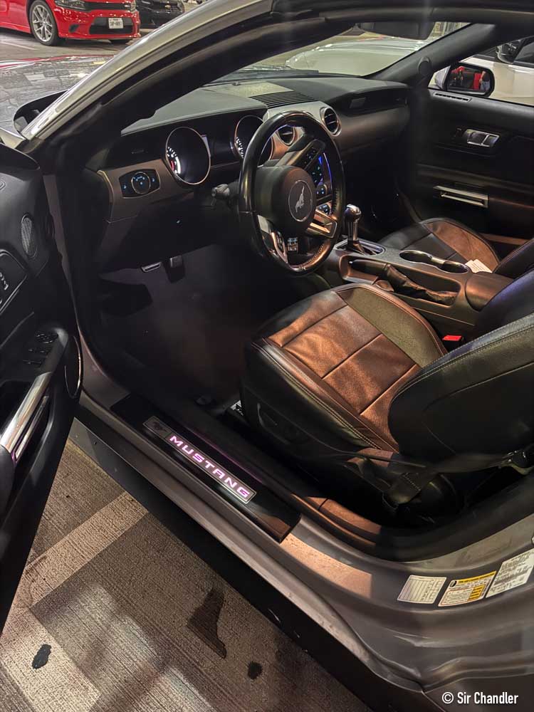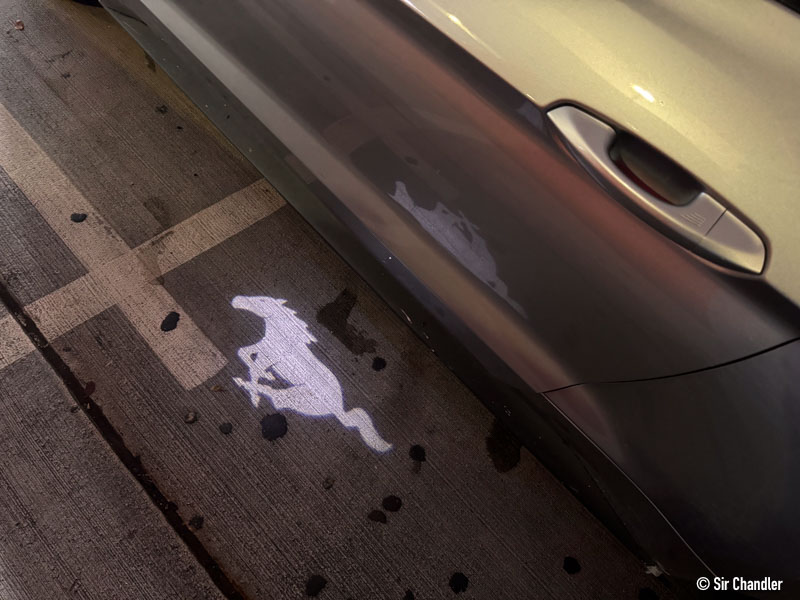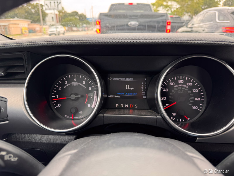Este que manejé rondaba las 50.000 millas, pero estaba impecable. Cuando uno lo activa el espejo proyecta al caballo de Mustang al piso