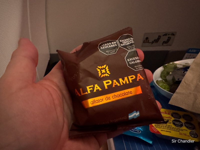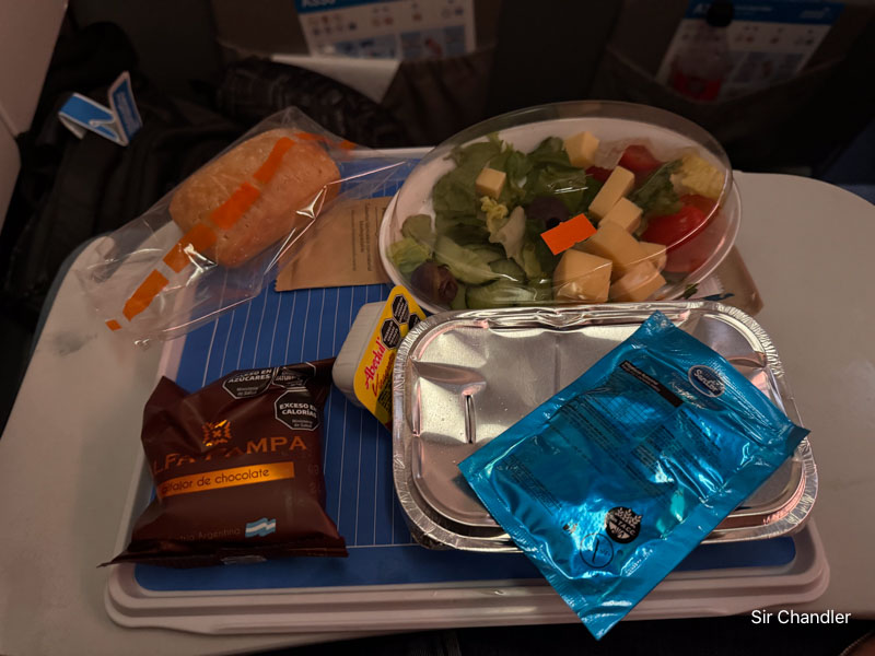Creo que no tuve chances de elección… aunque suelo ir por la pasta (o si no fue en este, fue al regreso). Pero en Aerolíneas reparten del medio hacia adelante y yo estaba en la primera fila. O sea el riesgo de no poder elegir suele pasar en cualquier aerolínea en las últimas filas. Acá… ese riesgo pasa en las primeras 😉