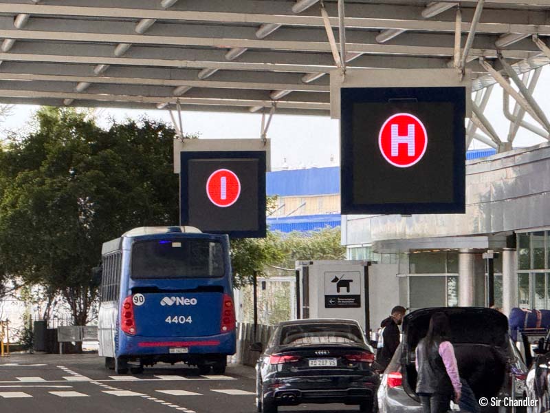 Entonces ahora quien pida un taxi o remis o sea buscado por algún familiar o conocido, podría indicar la letra en la cual espera. Ahí al fondo se ve uno de los colectivos de NEO, que es uno de los servicios que fui a grabar.
