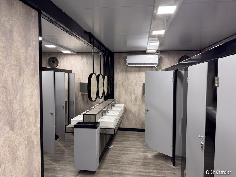 Por un lado hay unos baños modulares nuevos que están en donde se habían puesto los food trucks en pandemia y ahora se trabajará en ponerlos fijos para un poco más desplazados. Pero esos baños tienen una superficie que estimo es en un 65% para las mujeres y un 35% para los hombres