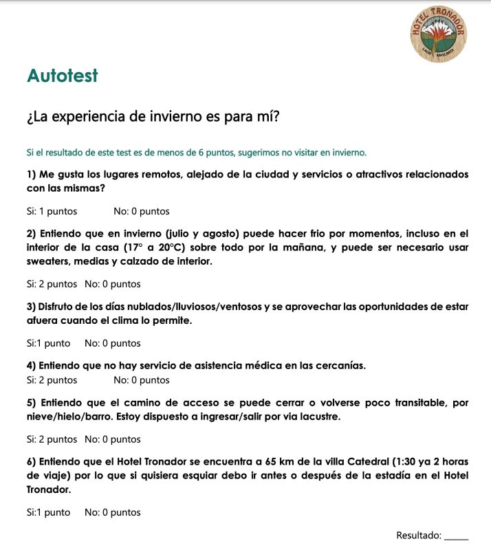 Cuando vi la noticia de que abrían me metí en la web del hotel y vi que para reservar, para que uno esté seguro de lo que quiere hacer… TE HACEN UN TEST, con varias preguntas que acá dejo