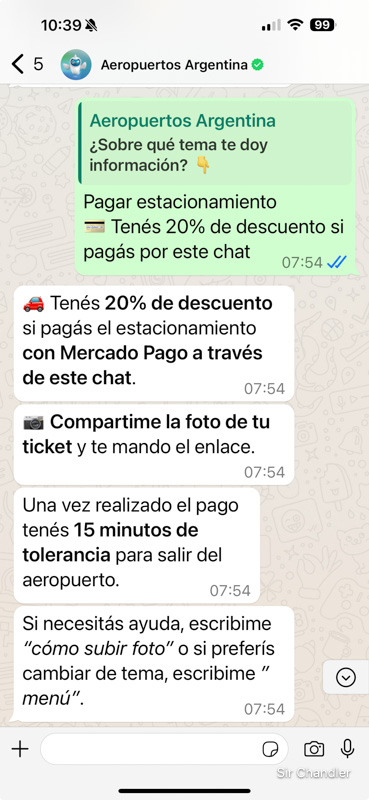 - Pagar el estacionamiento con descuento en Ezeiza https://www.sirchandler.com.ar/2025/06/aumentan-el-descuento-del-pago-via-whatsapp-o-telepase-en-varios-aeropuertos/