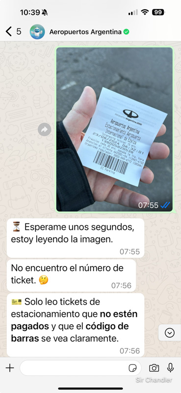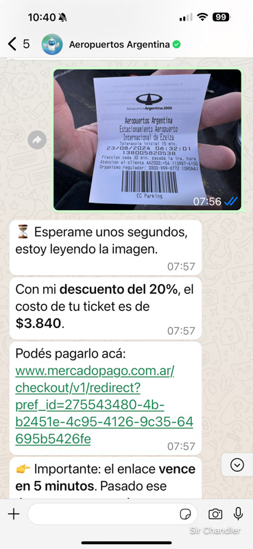 Sir: no era mas simple que con foto del Ticket o colocando tu patente directamente el whatsapp te abra un link de Aeropuertos Argentina y pagues por ahi?