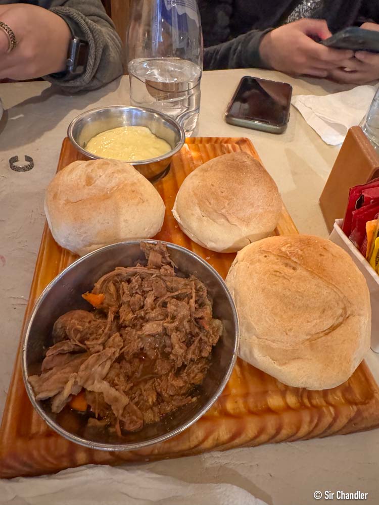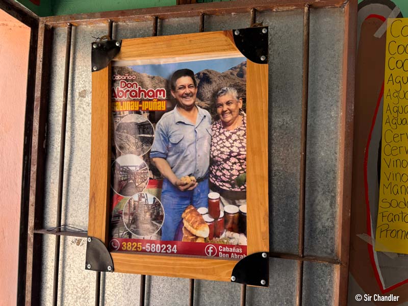 En la estación tres está DON ABRAHAM que te pide le encargues la comida antes de subir (si querés subir) que estará lista para cuando bajes. Le pedimos una pizza (casera) y un pan relleno… más un agua mineral grande. 8.000 pesos nos cobró, y nos bonificó los chistes y anécdotas :P.