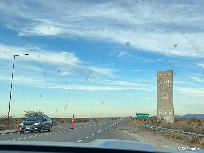 Almorzamos ahí y luego arrancamos para dormir en Córdoba… acá la entrada a la provincia sin control de frontera (??) pero con el parabrisas que cazaba todos los bichos