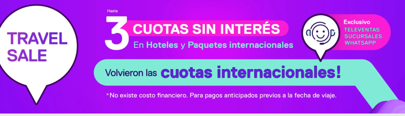 Pero lo que presentó una de las agencias más populares (Despegar) es la compra EN CUOTAS DE HOTELES Y ACTIVIDADES EN EL EXTERIOR.