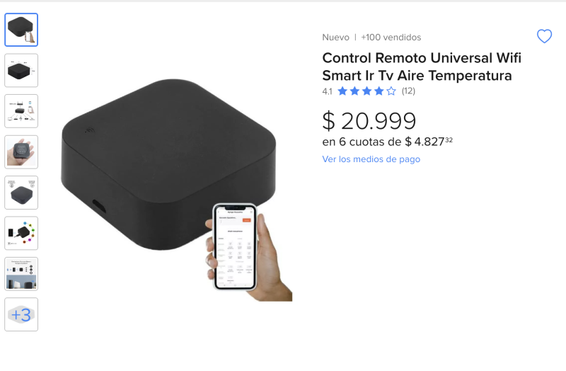 El mismo lo pueden ver más barato, por unos 16K pero no mide la temperatura… que yo creo que vale la pena o puede ser útil para algunas personas. Pero les dejo ese también https://articulo.mercadolibre.com.ar/MLA-1419837099-control-remoto-inteligente-universal-ir-wifi-smart-life-tuya-_JM