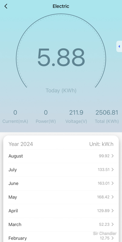 Y ese que me compré también en ML y como se ve es de la marca BAW o mejor dicho es la marca que acá alguien que compró varios en China le puso, mide consumo día por día, me dice la tensión que hay (como es habitual no es óptima) y lo puedo prender y apagar cuando quiera, además de la programación que le pongo.