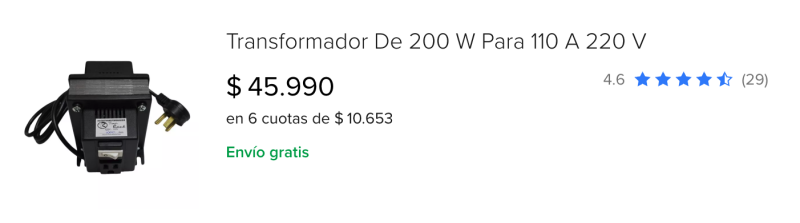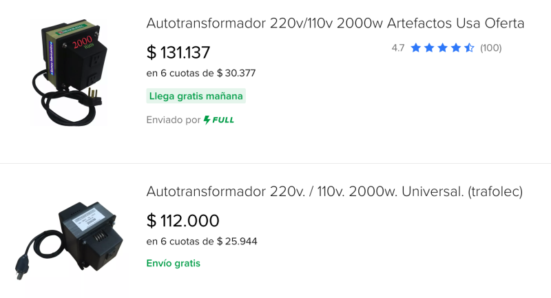Idem una pava eléctrica. Son de alto consumo. Mirá acá lo que cuesta un transformador de 220 a 110 que se banque 2.000w de consumo hora