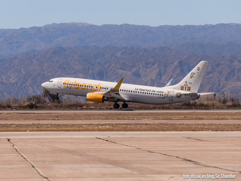 Hoy fue el primer vuelo de Flybondi a San Juan, dándole a esa provincia una segunda aerolínea que no tenía desde la partida de Latam, que se realizó antes de la salida de la empresa en el país,. durante 2018, donde también había dejado de volar a Bahía Blanca (como también lo dejó de hacer Flybondi).