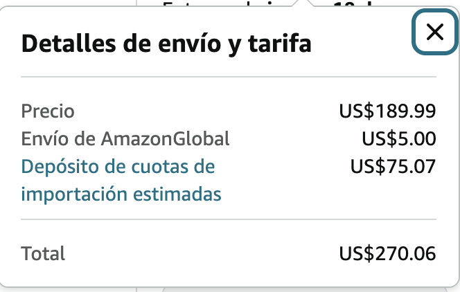 Ahí están los cargos son del envío de USD 5, pero lo que se confunden lo medios o no mencionan, son los costos de importación que en este caso son USD 75,07. QUE OJO, según mi experiencia es un cálculo pesimista… y puede ser que unas semanas después te devuelvan dinero. Veremos que dicen lectores con experiencia previa.