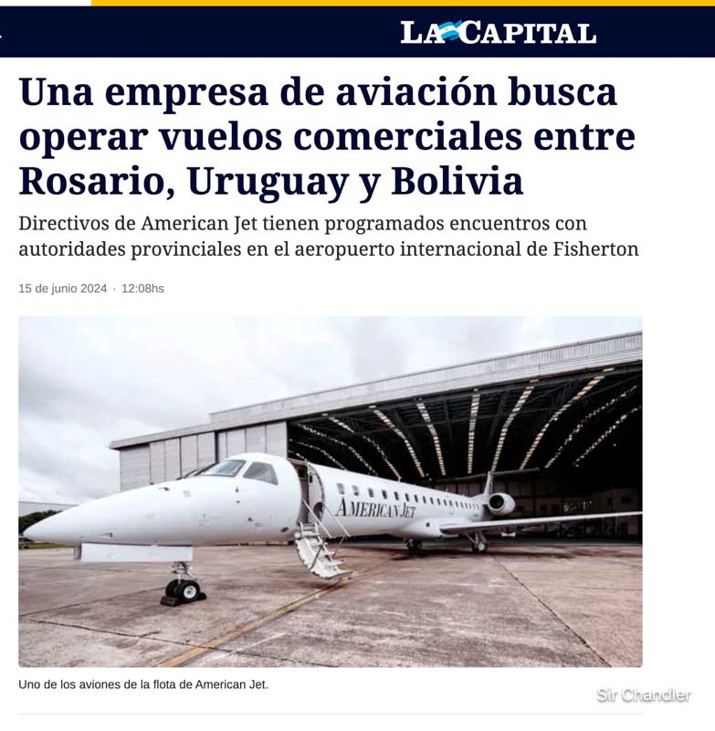 La empresa aérea argentina American Jet -fundada en 1983 y que inició sus actividades como taxi aéreo- mantuvo una serie de contactos con autoridades de Argentina, Bolivia y Uruguay para comenzar a operar vuelos comerciales internacionales uniendo las ciudades de Rosario, Santa Fe, Córdoba y Salta con Montevideo, Salto y Rivera, en Uruguay, y Santa Cruz de la Sierra, en Bolivia.