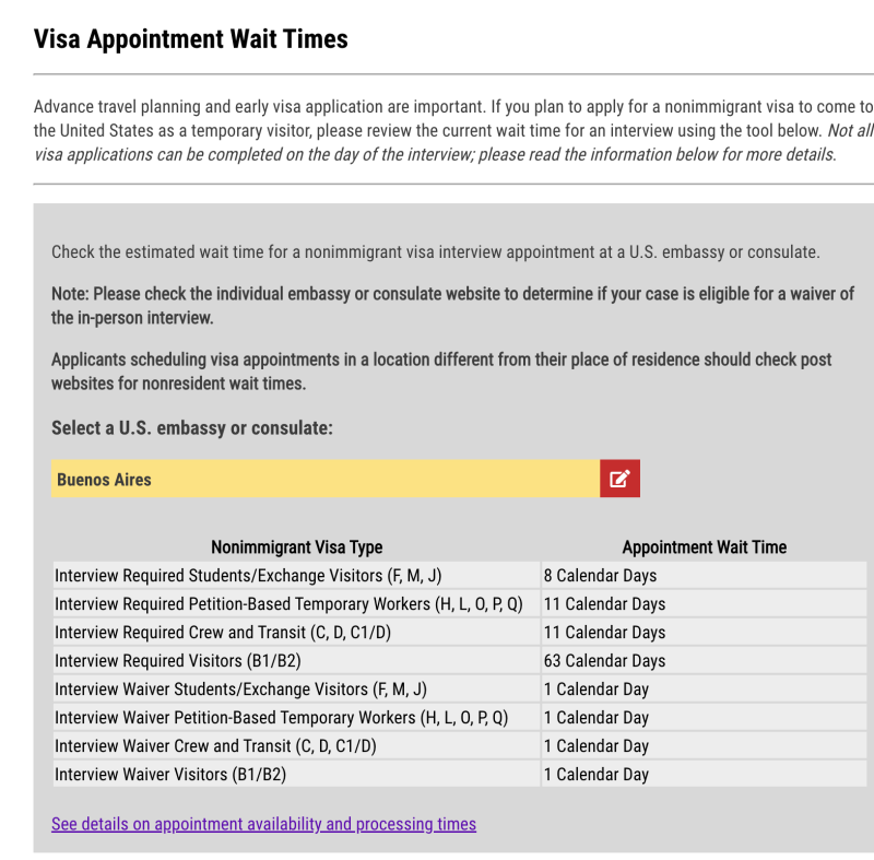 En este otro sitio se pueden ver las demoras en otros países/consulados https://travel.state.gov/content/travel/en/us-visas/visa-information-resources/global-visa-wait-times.html