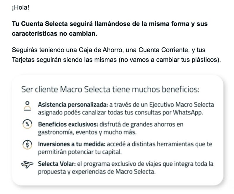 Pero lo que me pareció interesante para destacar es esto de abajo que habla del CBU, que claro, el de números cambia porque cambiará la cuenta y la entidad bancaria en si. Hablando de los que eran clientes del ITAU, no todos los del MACRO