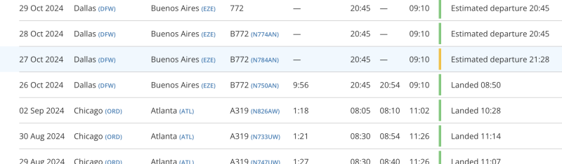 El AA997 salió el 26 desde allá llegando lógicamente el 27. Pero lo curioso es que hasta hace algunas semanas el número de vuelo se usó para un vuelo entre Chicago y Atlanta. Pero ese 997 es el clásico de la ruta con Dallas DFW y Ezeiza