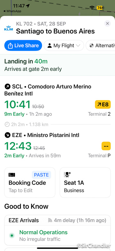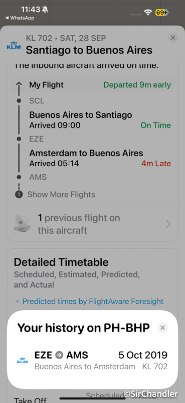 El KL 702 hace Santiago SCL Buenos Aires EZE Amsterdam AMS