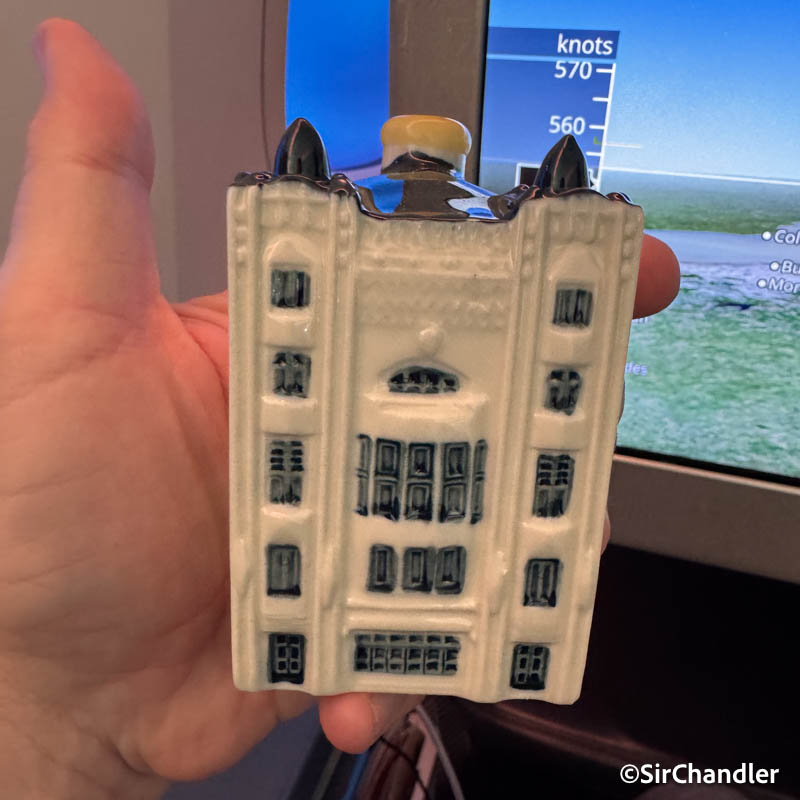 También se repartió la casita tradicional de cerámica. Que entiendo ahora si la dan en el vuelo corto, pero anotan si alguien sigue a Amsterdam para no repetir…