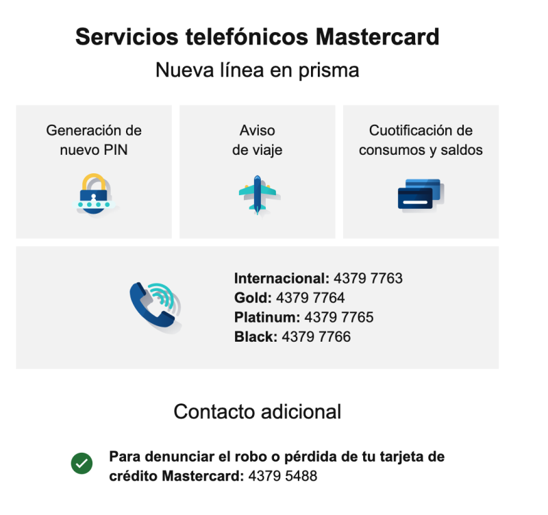 Sabes cuales son los nuevos telefonos para llamar a Master?