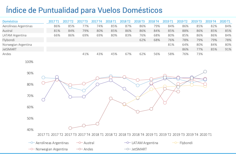 Acá el cuadro que mostraba la cantidad de vuelos y esa puntualidad del primer trimestre 2020