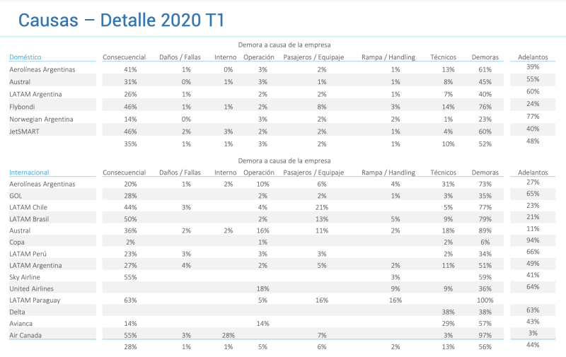 Antes de la pandemia la ANAC publicaba todos los meses un reporte con la info de los pasajeros y aviones movidos. Pero además en cada uno de los cuatro trimestres del año publicaba las estadísticas de atrasos, cancelaciones y hasta vuelos adelantados.