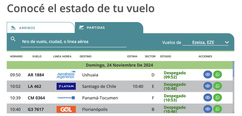 Ejemplo ayer tomé estas salidas de Ezeiza