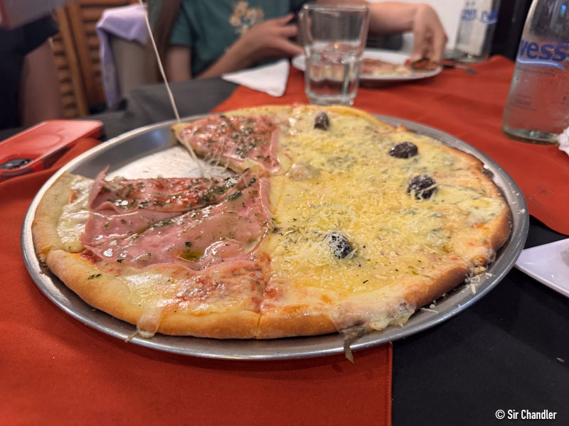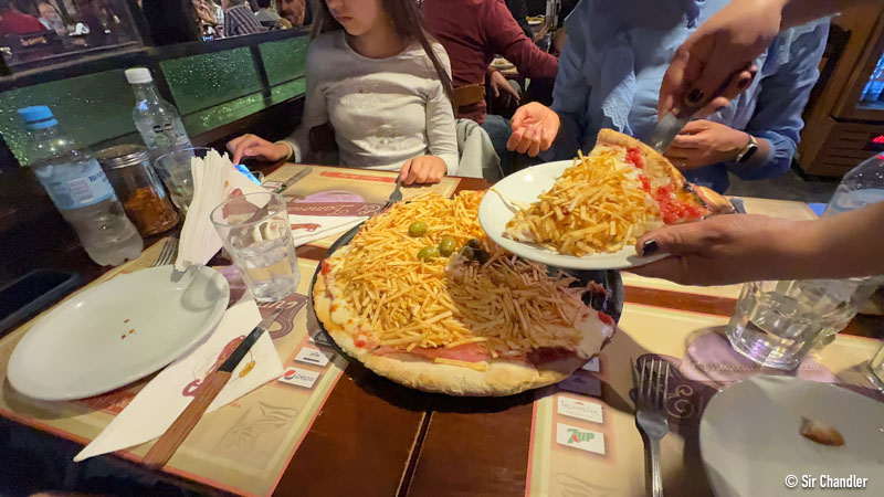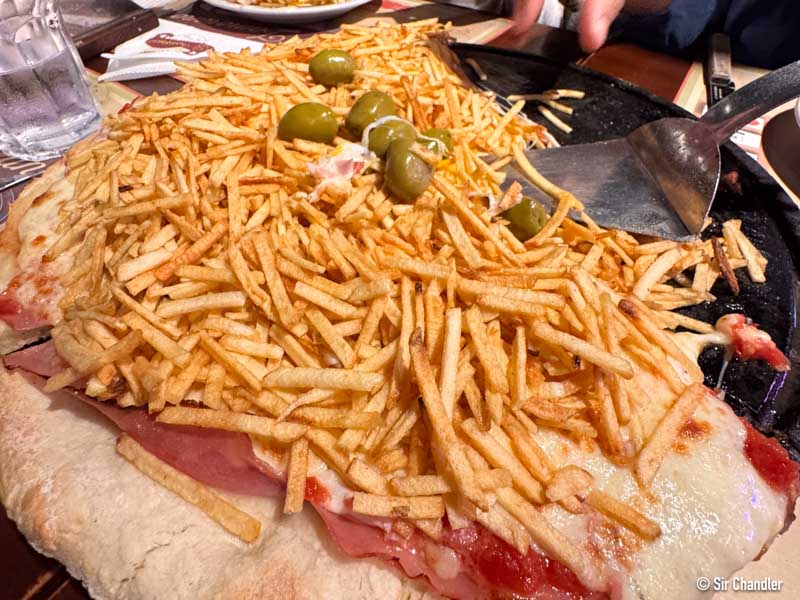 Tienen buena variedad de pizzas y como era para la nota pedimos la especial… LA ZAMORANO, que venía con papas fritas encina.