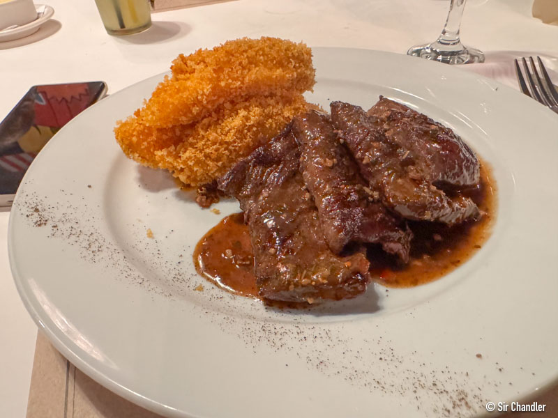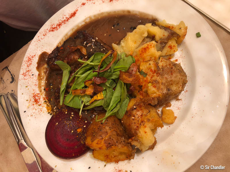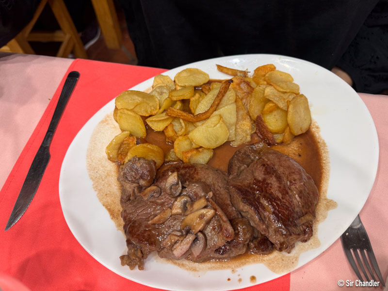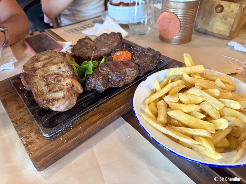 Y la entraña con papas bravas (que no son las españolas) es algo que yo suelo pedir