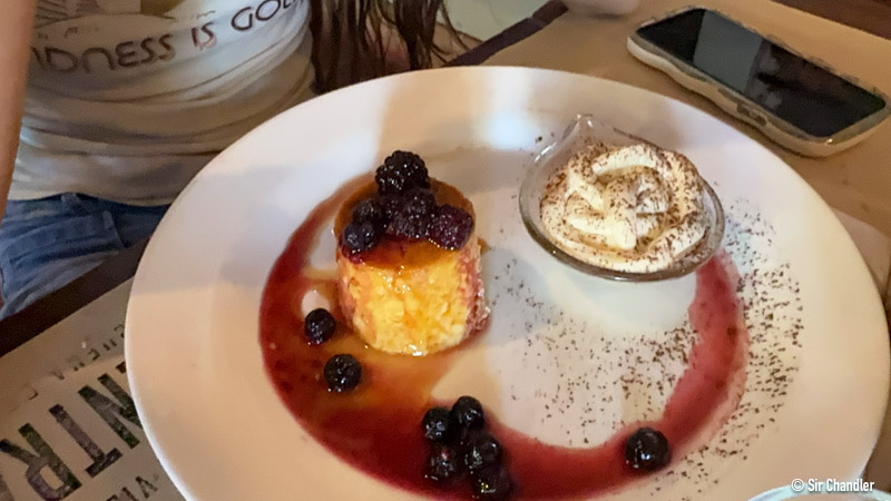Este si era un postre de este año donde parece que había muchas moras… ya que hasta la crème brûlée tenía (este es un flan… )