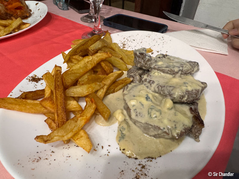 No puedo detallar los platos de todo el post porque básicamente no los recuerdo, aunque seguro en el video los menciono. Pero ese es el favorito de mi esposa con lomo y molleja en reducción de vino