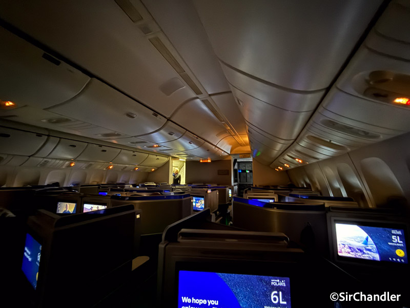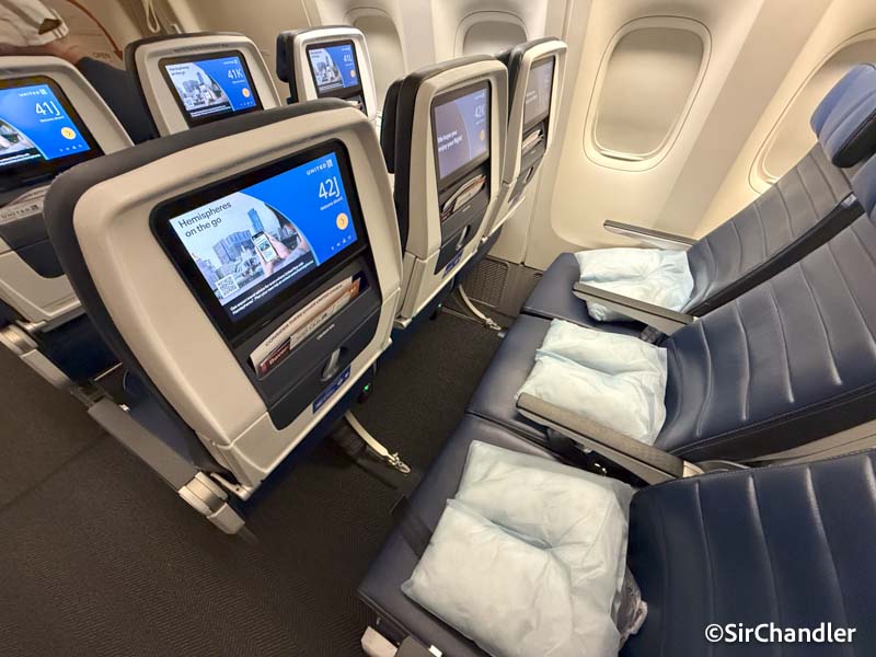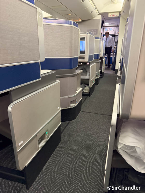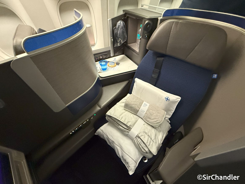 Viajé en la clase Polaris, que es la business de United. Este era mi asiento con sus dos almohadas y dos mantas