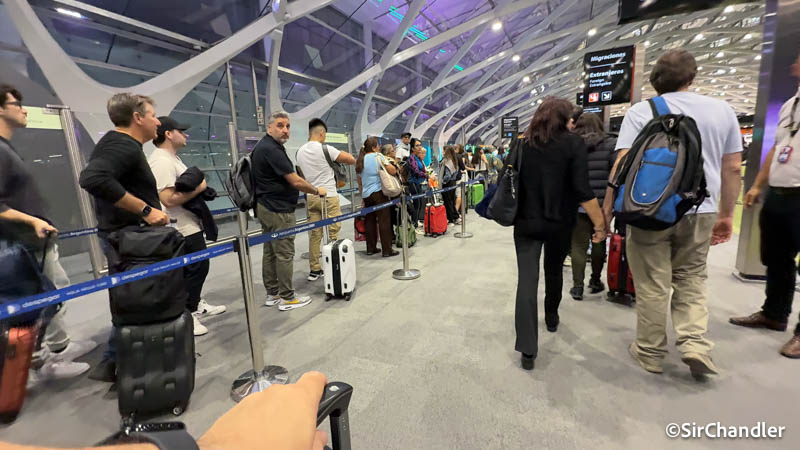 Sale a las 22:55 por lo que estuve rondando las 20. Seguridad fue rápido, pero migraciones tenía gran fila… pero terminó siendo de esas filas que se hacen porque alguien hace fila… en la parte express.