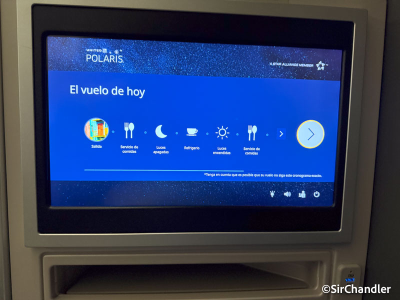 Esta es una buena info que ponen en todas las pantallas para contar como será el vuelo y los servicios. Está en todas las clases