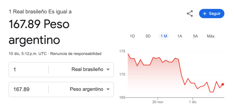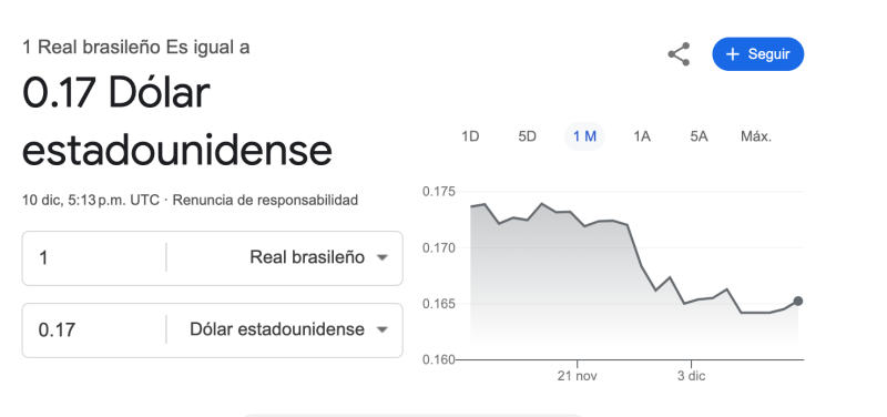 HOY, si me fijo la cotización REAL A DOLAR da que un real es 0,17 dólares