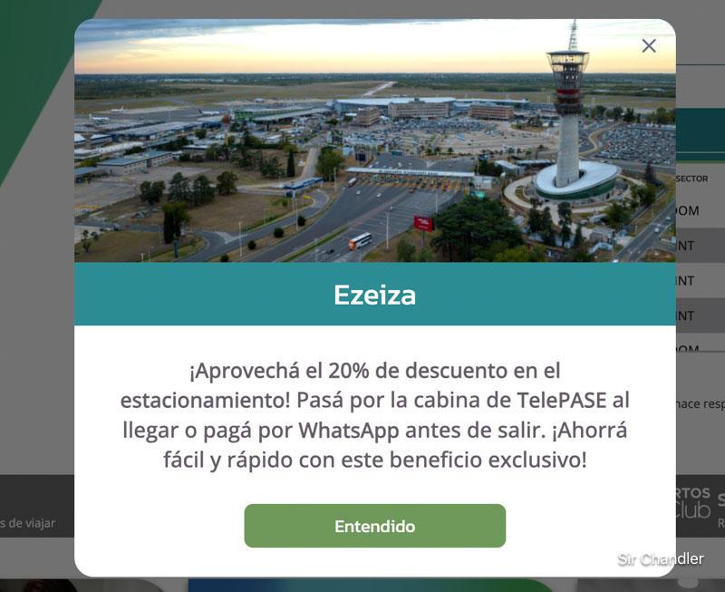 - Pagar el estacionamiento con descuento en Ezeiza https://www.sirchandler.com.ar/2025/06/aumentan-el-descuento-del-pago-via-whatsapp-o-telepase-en-varios-aeropuertos/