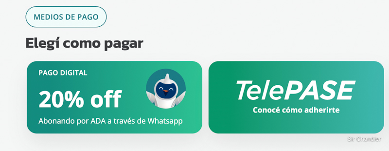 Entonces desde hace unos días, quien use telepase tendrá el mismo beneficio de los que pagan por whatsapp que termina dando un link para pagar mediante mercado pago con todos los medios ahí cargados. Y aunque a veces no reconoce el ticket, el sistema funciona bien