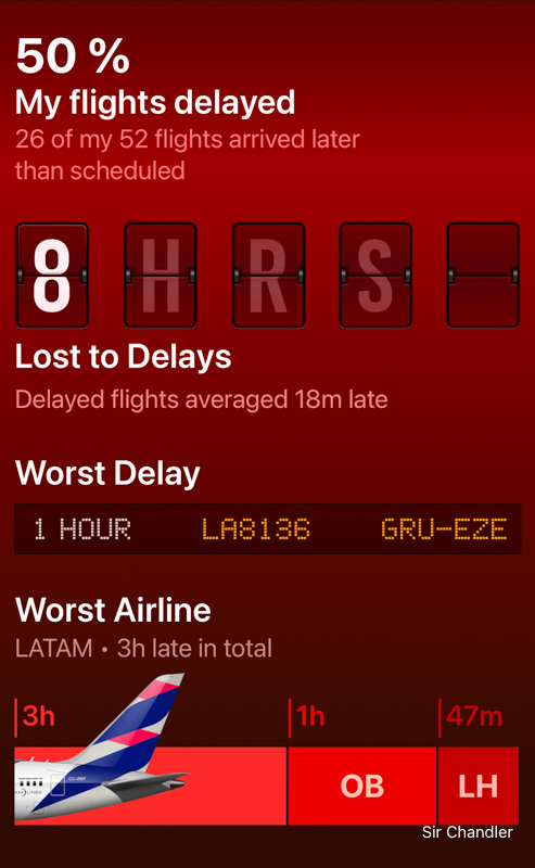 Y acá el detalle… PERO TIENE QUE HABER UN ERROR DE FLIGHTY porque marca una demora en BOA y otra en DELTA que arriba no aparecen! Y como detalle lo de Lufthansa la demora mayor fue de 27 minutos y las de Aerolíneas ni aparecen, por lo que fueron menos tiempo