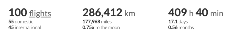 Mi récord, que no pienso buscar nuevamente… fue en 2018 con 100 vuelos. Pero si bien fue casi el doble de vuelos no lo fueron los kilómetros