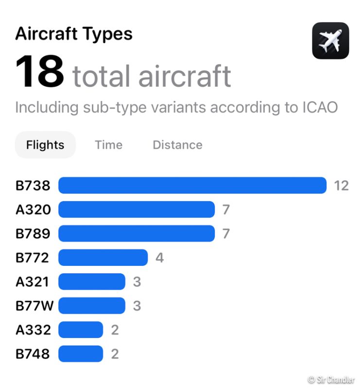 19 aviones distintos y habla de MODELOS de aviones, no de matrículas. El 65% fue BOEING, el avión más nuevo un A321 de solo dos años y el más viejo un 777-200 de 28!!