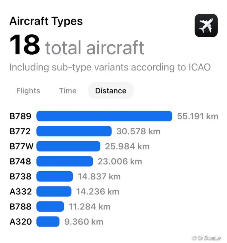 Y acá por distancia… donde gana el 787-9 por el peso de KLM y Latam en los vuelos que hice