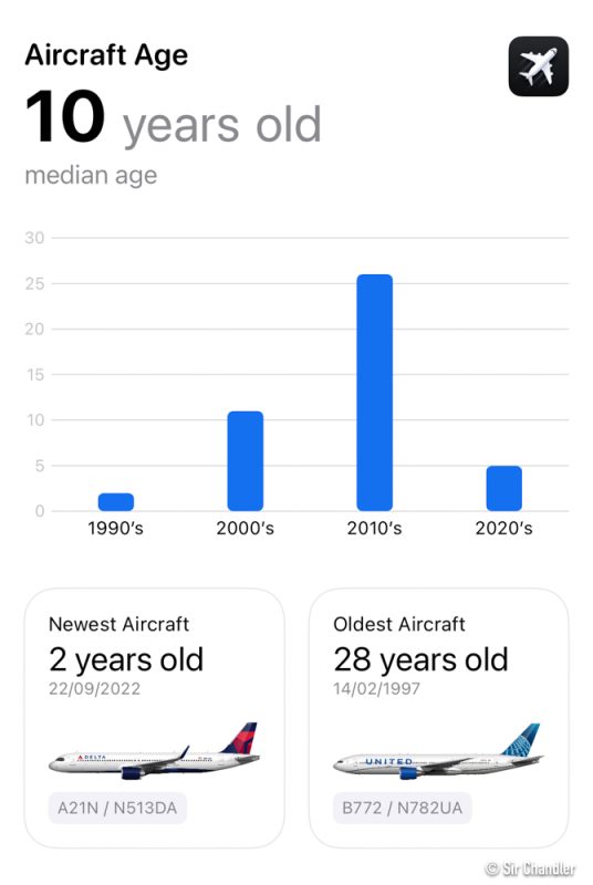 Y confirmado ese nuevo de Delta con dos años y el 777 de United con 28… que como siempre digo, porque es habitual ver a los «viejitos» con las aerolíneas de USA, es que los tienen muchos años, siempre con ellos, renovando las cabinas… y uno no se da cuenta, salvo que busque la data del avión en si.