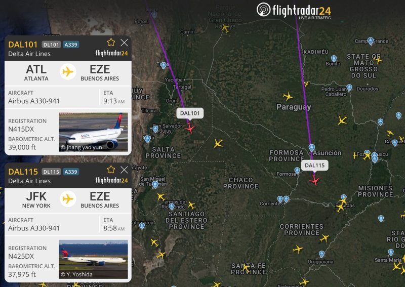 Hace minutos dos Airbus 330 neo entrando en la Argentina según Flightradar24
